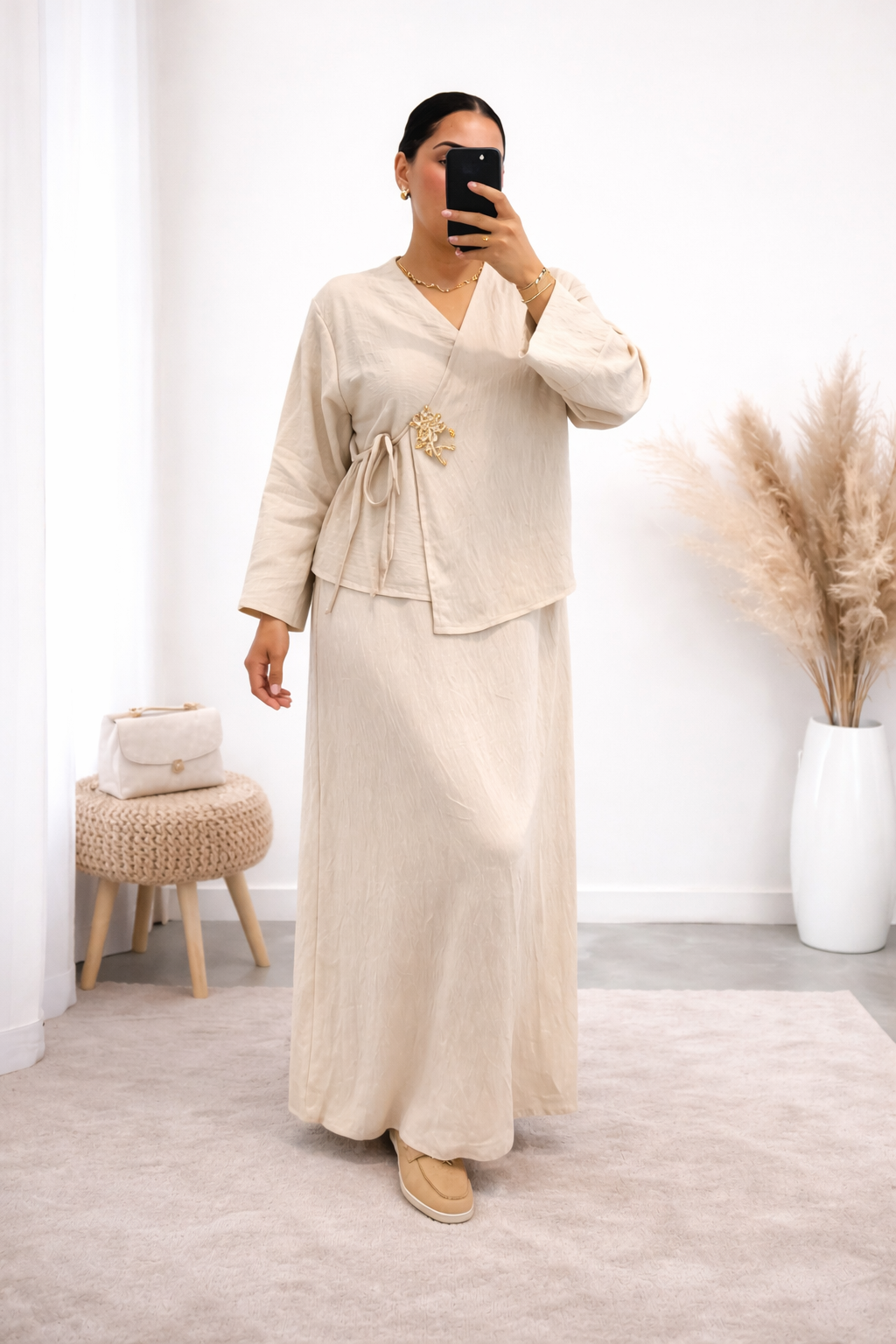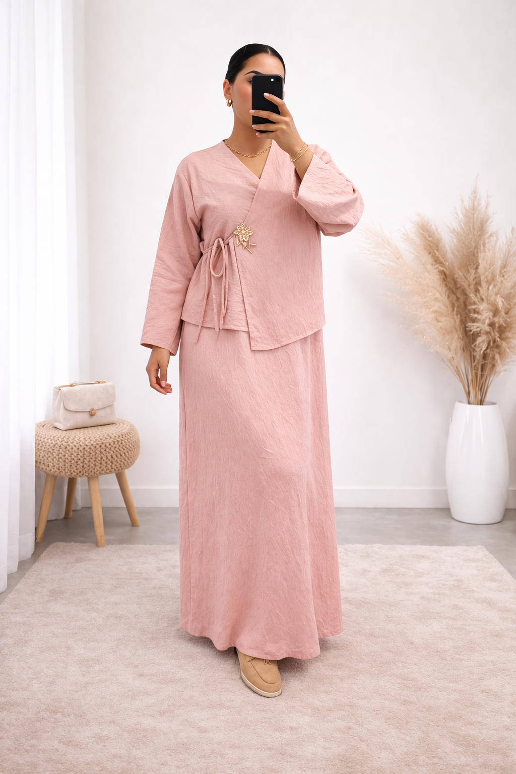 un ensemble fluide au style doux et raffiné parfait pour un look féminin et élégant.